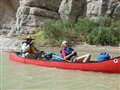 Dawn broke very pleasant, after all of the drama through the darker hours, and we all got up and shook the sand out of everything we could and compared notes. Then breakfast, striking camp, packing the boats and off we went for our last 5 miles. This is where the trickiest rapids appear on the trip. Each decided whether to run or line the rapids and went forward with his/her decision. Those who ran them had a great ride, and those who lined got some great photos.