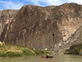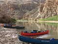 Thanks to everyone’s excellent cooperation, we were on the water by 10:00, as planned. It was a beautiful day of scattered clouds. The riffles and shallows of the pre-canyon section provided excellent acclimation to help us get used to controlling our heavier-than-usual boats. We passed the ICE station, then the Boquillas Crossing and Boquillas village, dangled our hands in the hot springs feeding into the river, and finally passed the Overlook.