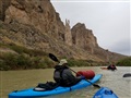 Sunday dawned overcast – a photographer’s dream. We did the breakfast thing, and the striking camp thing, and the figuring out how the heck we were going to get all that stuff back into our boats thing, and we were underway by just after 9:00. The overcast held, so it was very comfortable paddling along the ever-changing walls of the canyon. Just before lunch, it started drizzling a little – a nice touch. We pulled over on another gravel bar for lunch just upstream from “El Conejo”, the Rabbit. Some pulled on rain gear while they were eating, preparing for the possibility of increased precipitation. Back on the water, the sprinkling continued intermittently for a little while and then finally gave up. I think it was on this segment, just before leaving the canyon, where several of us saw a raven swoop into a wall above us and pick something off if it (probably a lizard or vole), dropping from the cliff with it in its talons until it’s wings caught enough air to fly again.