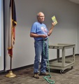 He then gave the Safety Minute, on knowing how to tie a quick-release knot. He demonstrated one type, the “mooring hitch”.
